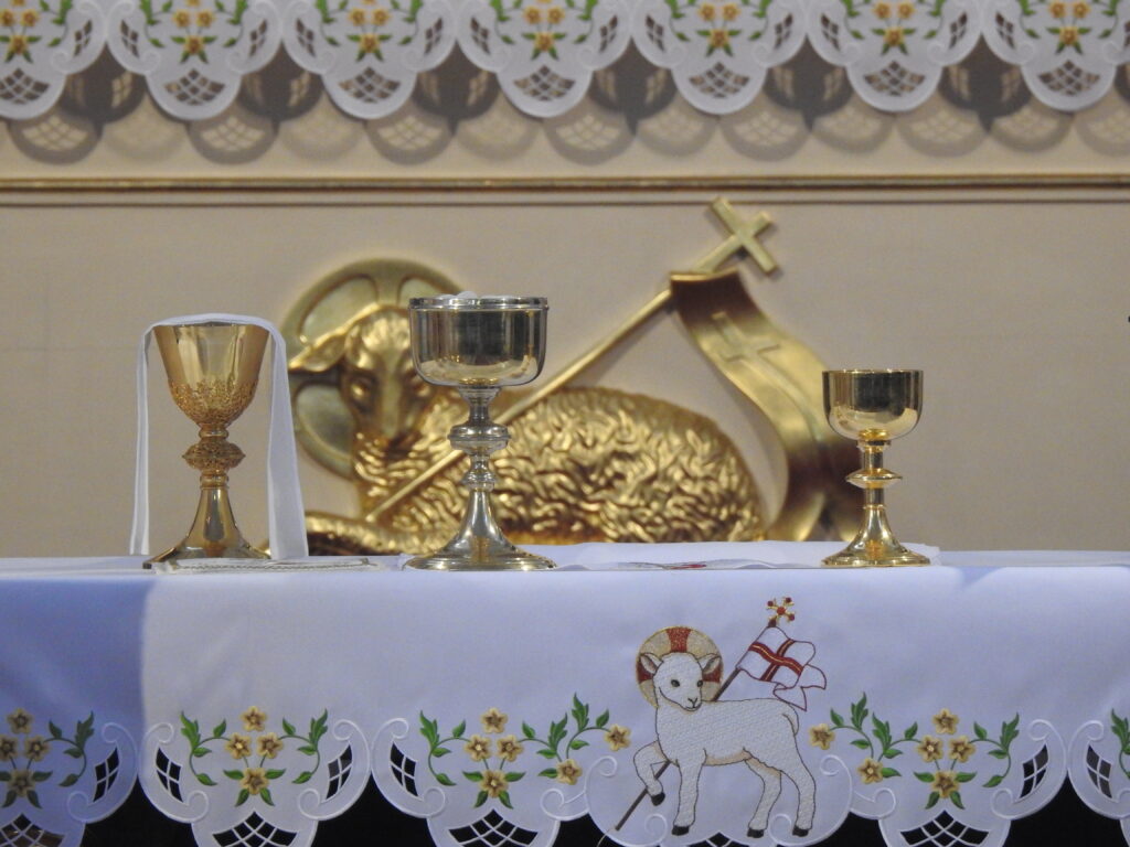 Liturgia eucharystyczna Wigilii Paschalnej, to centrum naszego chrześcijańskiego życia. To właśnie tu i teraz każdy z nas ma swój szczególny udział w męce, śmierci i zmartwychwstaniu Chrystusa, to tu dokona się nasze osobiste spotkanie ze Zmartwychwstałym. Wszystko to, czego dokonuje Kościół podczas całego roku liturgicznego, wychodzi z tej paschalnej Eucharystii i ku niej zmierza. Oświeceni niegasnącym światłem zmartwychwstałego Pana, umocnieni w wierze Słowem Bożym, odnowieni w komunii z Chrystusem dzięki wspomnieniu Chrztu Świętego, przystępujemy do paschalnej Uczty Baranka. W sakramentalny sposób dokona się w ofierze Paschalnej przejście Jezusa przez śmierć do życia, którego i my stajemy się uczestnikami. Teksty Modlitwy nad darami, prefacji i Modlitwy po Komunii, ukazują nam zasadniczą treść tej Eucharystii – Chrystus jest prawdziwym Barankiem, który zgładził grzechy świata. To właśnie na ołtarzu dokonuje się misterium śmierci i zmartwychwstania Chrystusa. On zaprasza nas do swojego stołu, gdzie razem z Nim złożymy bezkrwawą Ofiarę i umocnimy się Jego Ciałem i Krwią, które są dla nas największym darem Jego miłości. Eucharystia tej Nocy jest najwyższym i najbardziej znaczącym dziękczynieniem jakie Kościół składa Ojcu za to, że dał nam swego Syna.