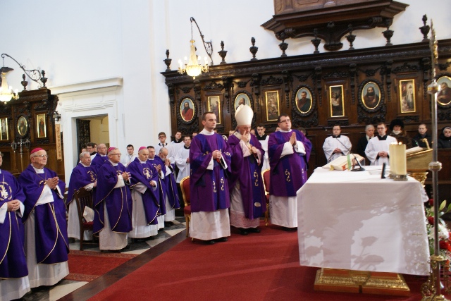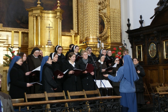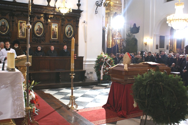 W każdą niedzielę o 9.00 w bazylice Świętego Krzyża w Warszawie celebrowana jest Eucharystia transmitowana przez Polskie Radio. W niedzielę 27 stycznia 2013 roku zgromadzili się na niej siostry i bracia zakonni, z okazji zbliżającego się dnia osób konsekrowanych (2 II – najbliższa sobota). Podczas liturgii kilka sióstr z naszej wspólnoty śpiewało w chórze międzyzakonnym pod dyrekcją s. M. Dolores Nowak. Przygotowywałyśmy śpiew na ten dzień nie przypuszczając, że Pan zechce, aby nasza modlitwa otoczyła szczególnie jedną Osobę: zmarłego ks. Kardynała Prymasa Józefa Glempa. Trumna z jego ciałem wystawiona przed ołtarzem zgromadziła tłumy wiernych, którzy pragnęli oddać mu hołd. Eucharystii przewodniczył JE ks. Kard. Kazimierz Nycz, który w homilii podkreślił, jak czułą troską otaczał Prymas zgromadzenia zakonne, zawsze służąc radą, poświęcając czas, interesując się dziełami apostolskimi.