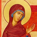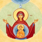 Wydarzenie to miało miejsce w dniu Pięćdziesiątnicy i zostało opisane w Dziejach Apostolskich 2, 1-13. Na apostołów i Maryję zgromadzonych w Wieczerniku zstąpił wtedy Duch Święty, manifestując swoją obecność przez szum wiatru i ogniste języki, widniejące nad głową wszystkich osób. Na centralnym miejscu siedzi Maryja z rękami uniesionymi w geście modlitwy, symbol modlącego się Kościoła. Wokół niej na półkolistej ławie zasiada dwunastu apostołów. Najbliżej Maryi znajdują się św. Piotr i św. Paweł, który nie mógł uczestniczyć w tym wydarzeniu. Jednak tradycja ikoniczna zamiast postaci św. Macieja, który został wybrany na miejsce Judasza, wprowadza postać św. Pawła. Apostoł Narodów został dołączony do grupy Jedenastu, ponieważ jak oni spotkał Jezusa Zmartwychwstałego. Ponadto wraz ze św. Piotrem jest filarem i patronem Kościoła.